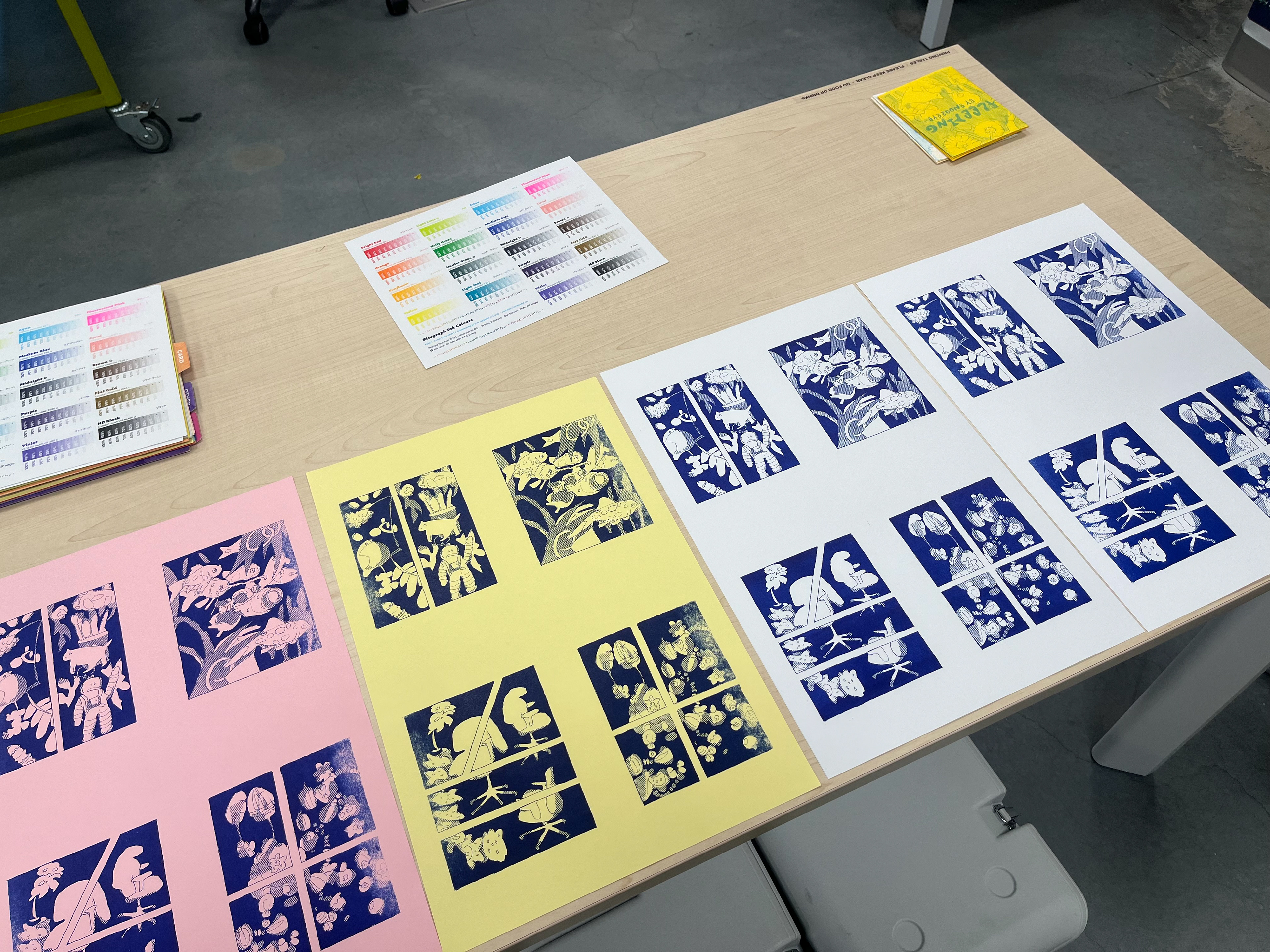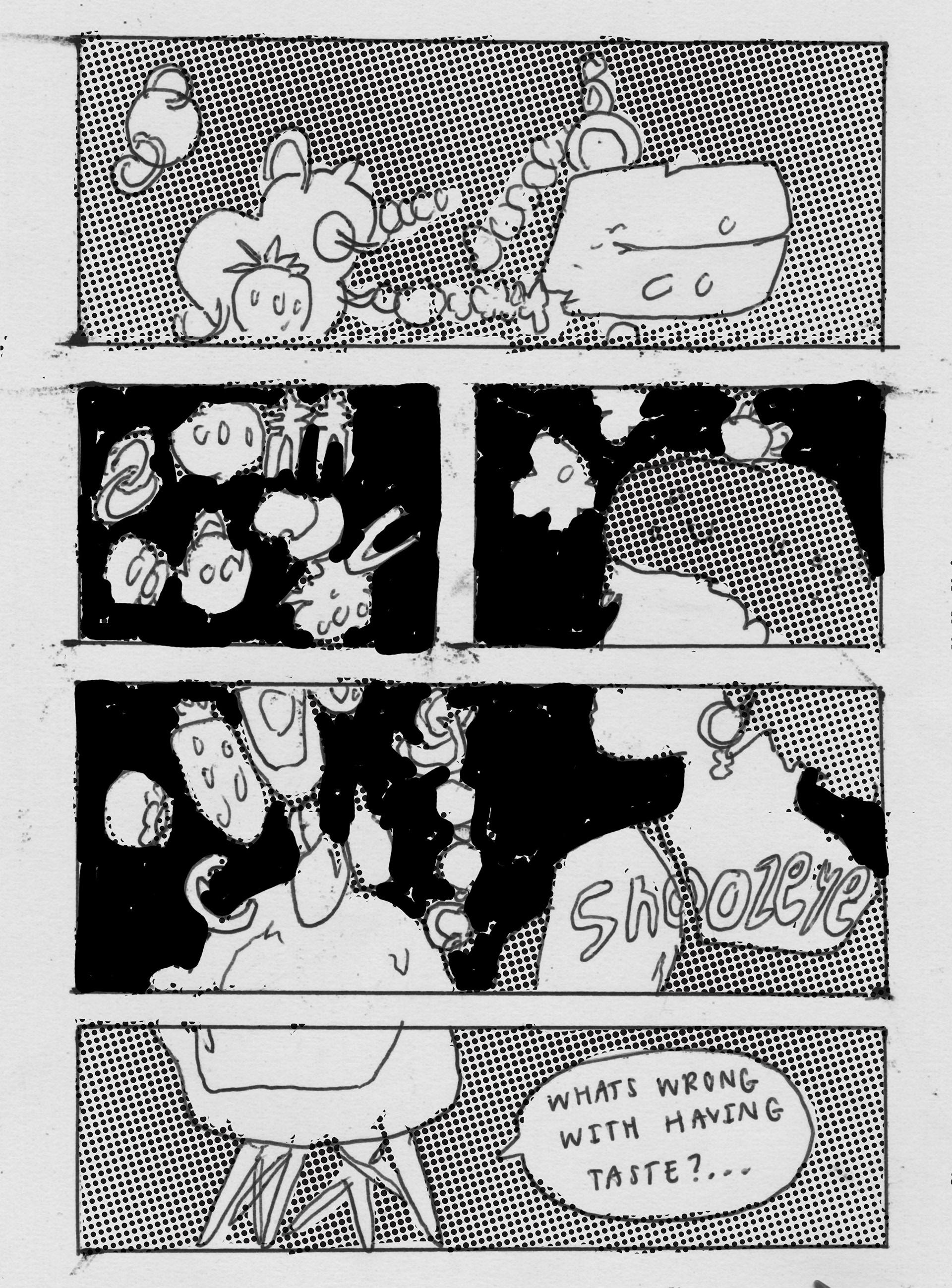 These are comic book sketches for my grad project called snoozeye vol 1, still working on the title. Printing style: Risograph